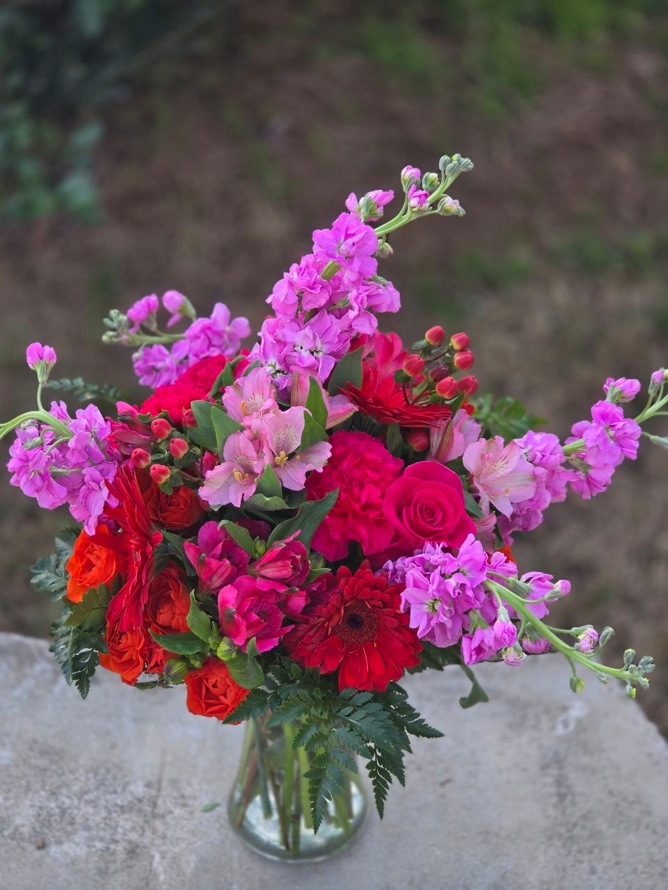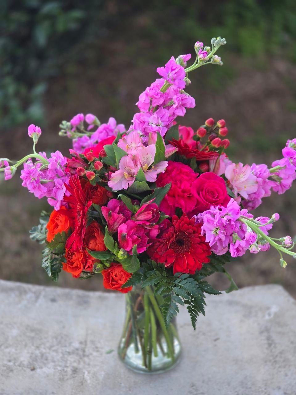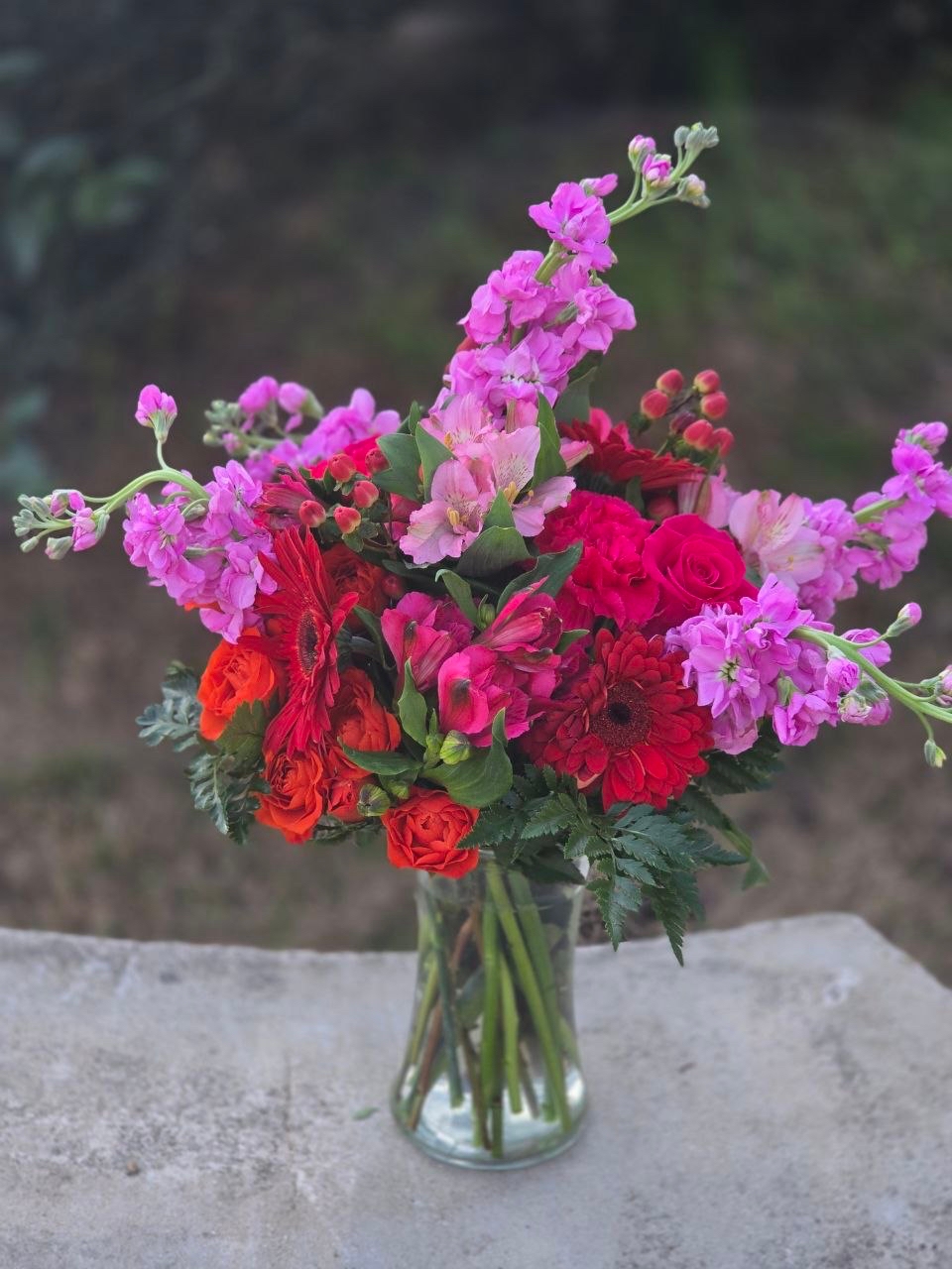Thanks to its vibrant yet harmonious color palette and combination of different shapes, this arrangement is versatile: