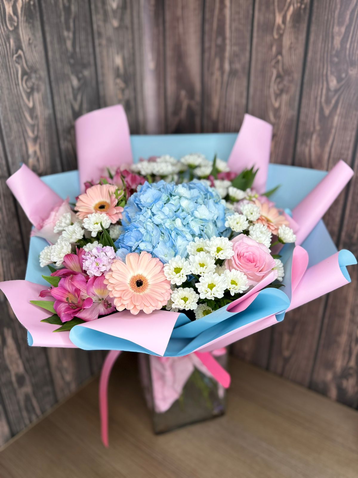 Looking to surprise someone special with a fresh, vibrant, and unforgettable floral arrangement? Our Premium Flower Bouquet in Bubble Gum wrapping is a stylish and joyful composition that blends elegance and modern charm. Designed with love and care by our professional florists, this bouquet is wrapped in trendy Bubble Gum–colored paper — a soft, delicate shade of pink with a playful, youthful twist — making it perfect for any occasion that calls for beauty, color, and emotion.