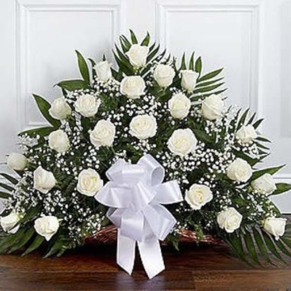 This funeral bouquet of white roses, gypsophila, eucalyptus, and greenery is more than just flowers. It is a symbol of bright memory, an expression of love and deep respect, and a way to support family and friends during the difficult moment of farewell.